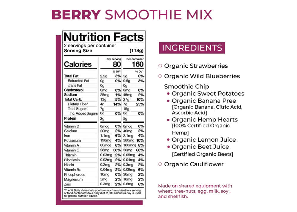 - Organic Chicken Bone Broth (Filtered Water, Organic Chicken, Organic Carrots)