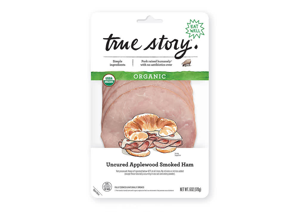 True Story Uncured Applewood Smoked HamIngredients: Organic Pork, Water, Sea Salt, 2% or Less of: Organic Brown Sugar, Celery Powder.