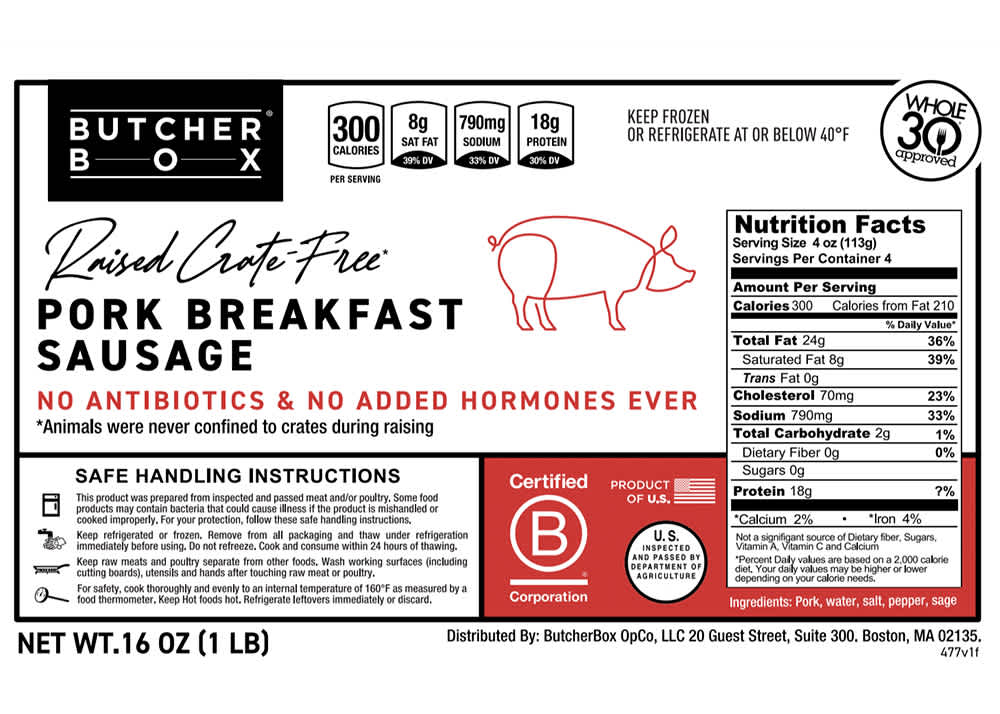 PORK BREAKFAST SAUSGE PATTIES INGREDIENTS: